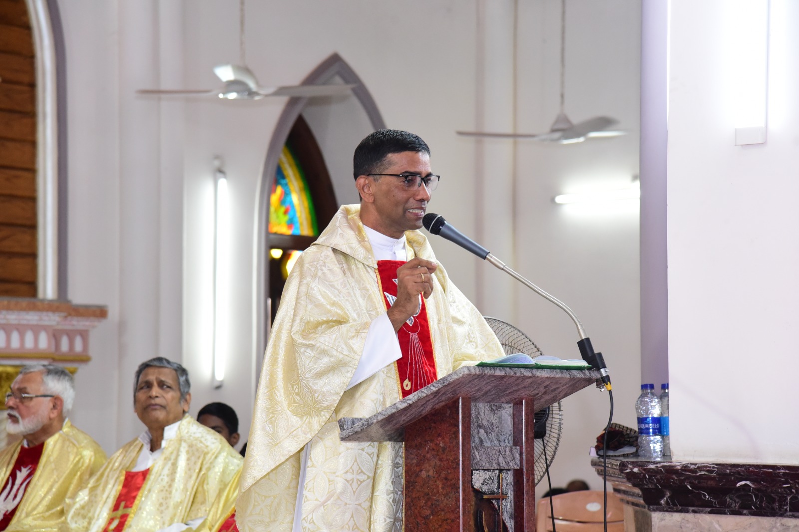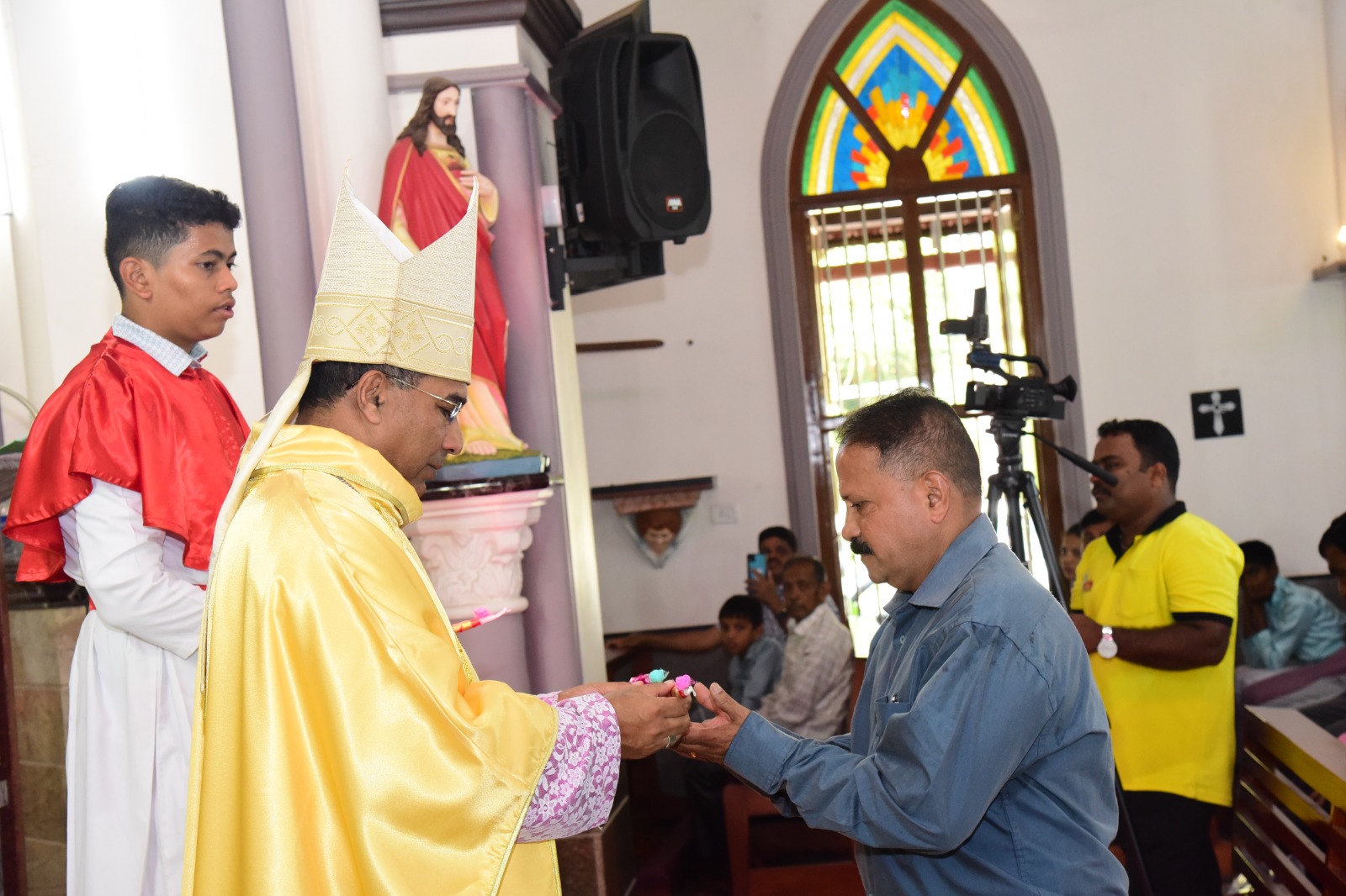 ವಾರಾಡ್ಯಾಚೆ ಯಾಜಕ್ ಆನಿ ಸಯ್ರ್ಯಾ ಯಾಜಕಾಂಚ್ಯಾ ಹಾಜರ್ಪಣಾನ್ ಆಲ್ತಾರ್ ಸೊಭ್ಲ್ಲಿ.