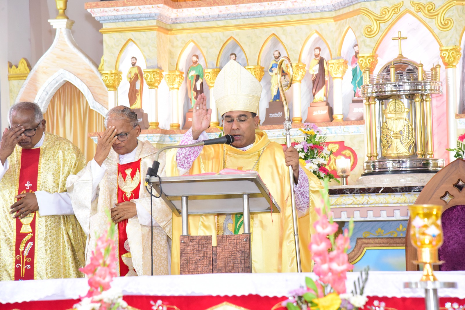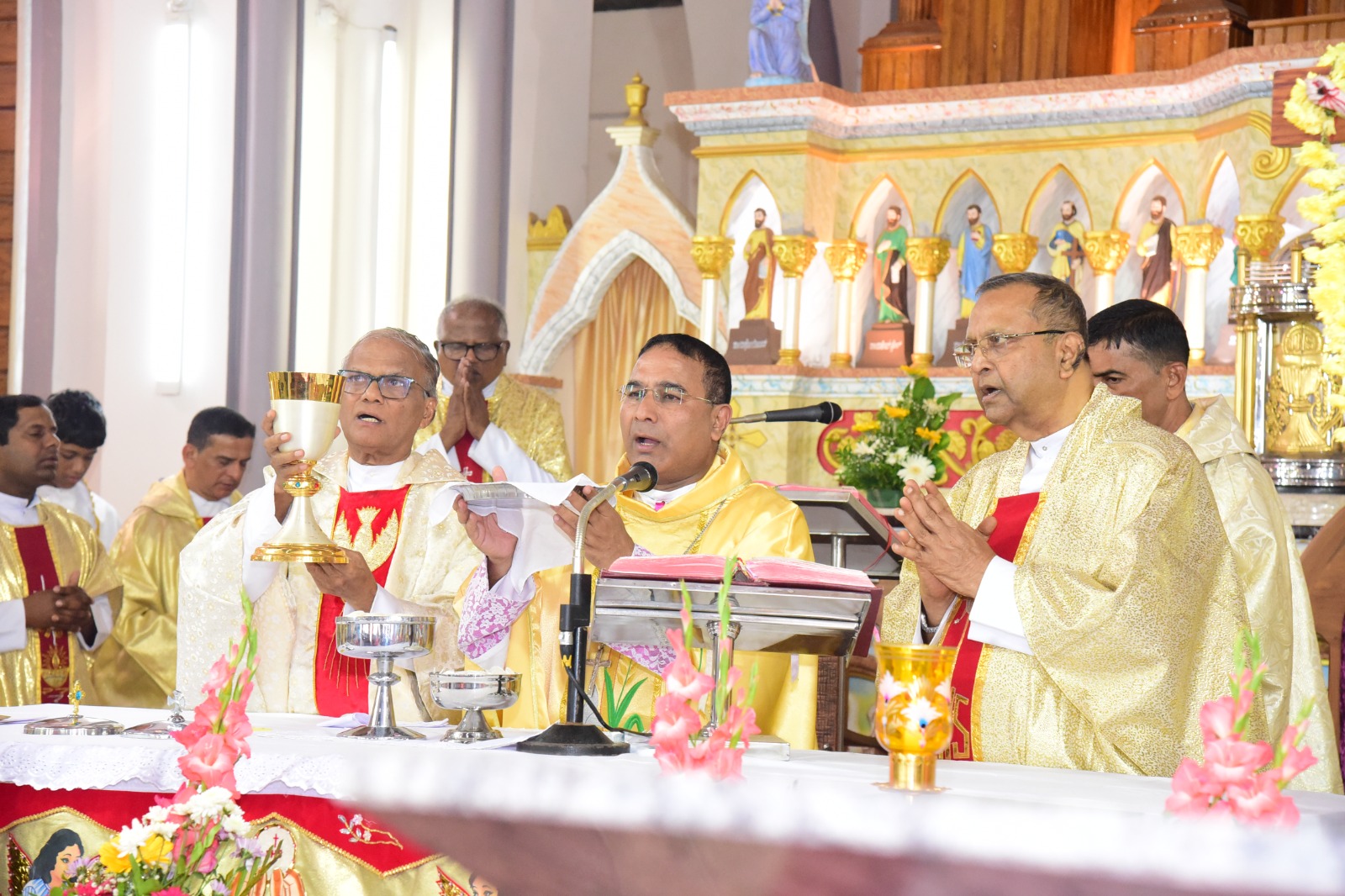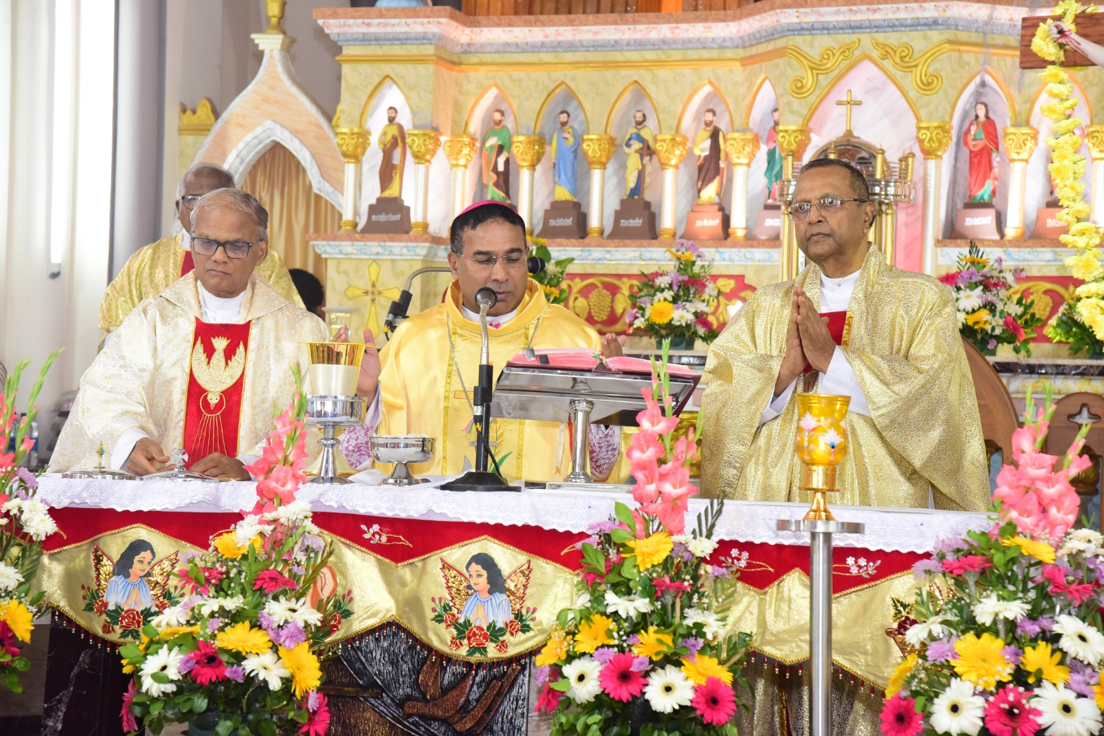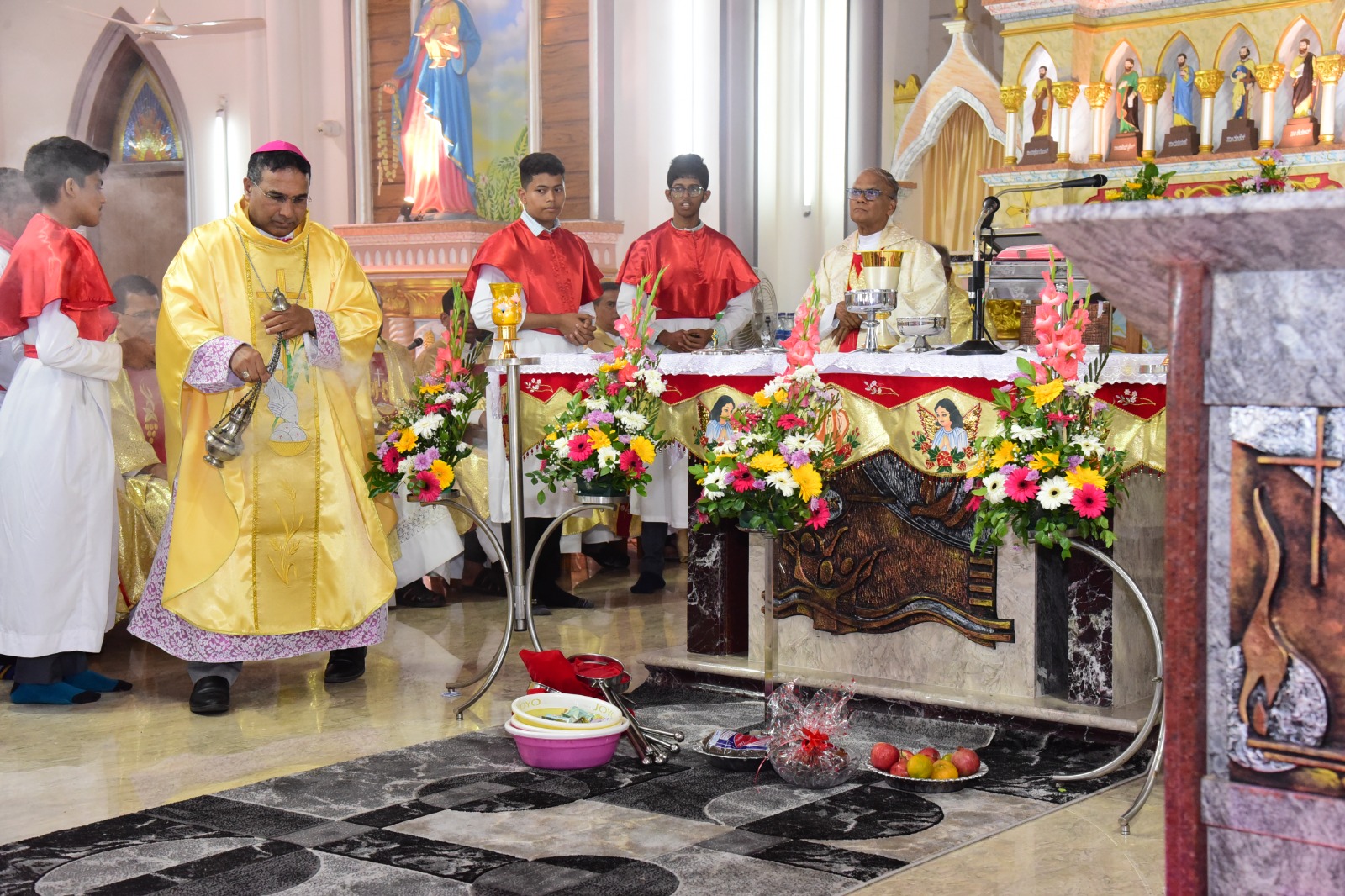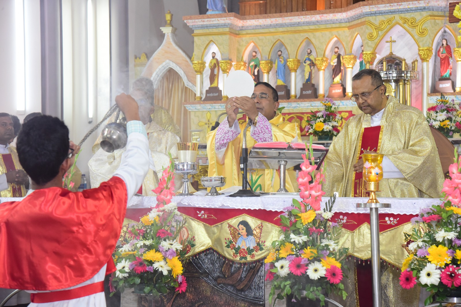 ವಾರಾಡ್ಯಾಚೆ ಯಾಜಕ್ ಆನಿ ಸಯ್ರ್ಯಾ ಯಾಜಕಾಂಚ್ಯಾ ಹಾಜರ್ಪಣಾನ್ ಆಲ್ತಾರ್ ಸೊಭ್ಲ್ಲಿ.
